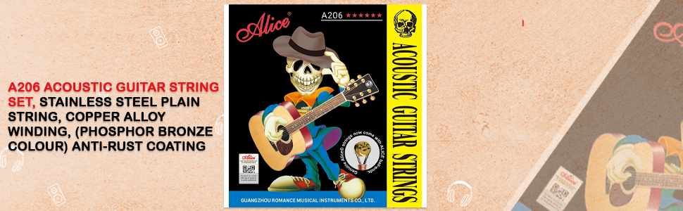 ALICE A206 Acoustic Guitar String Set, Staninless Steel Plain String, Copper Alloy Winding, (Phosphor Bronze Color) Anti-Rust Coating